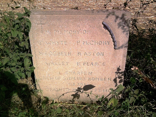 The Short Stirling III Bomber BK784, based at RAF Tuddenham in 1944, crashed at Chippenham, about 5 miles away, after a night operation bombing of Essen. It was part of Bomber Command. No. 90 Squadron; the squadron converted to the Lancaster in May-June 1944, flying that type until the end of the war.