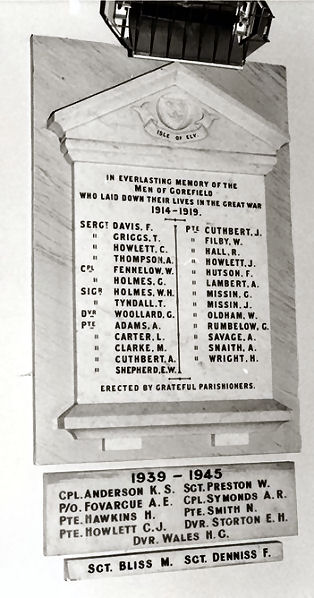 resident Gorefield Road, Leverington, Wisbech, Cambridgeshire. Commemorated
