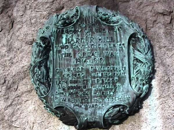 Dedicated to "The Memory Of The Men Of Harpur Hill Who Gave Their Lives In The Great War 1914-1919"