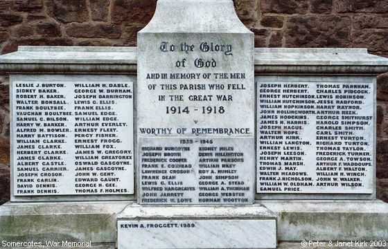 Private 16659, 1st Battalion, Coldstream Guards. Killed in action 15 September 1916. Born Somercotes, enlisted Derby, resident Alfreton. No known grave. Commemorated on THIEPVAL MEMORIAL, Somme, France. Pier and Face 7 D and 8 D. |