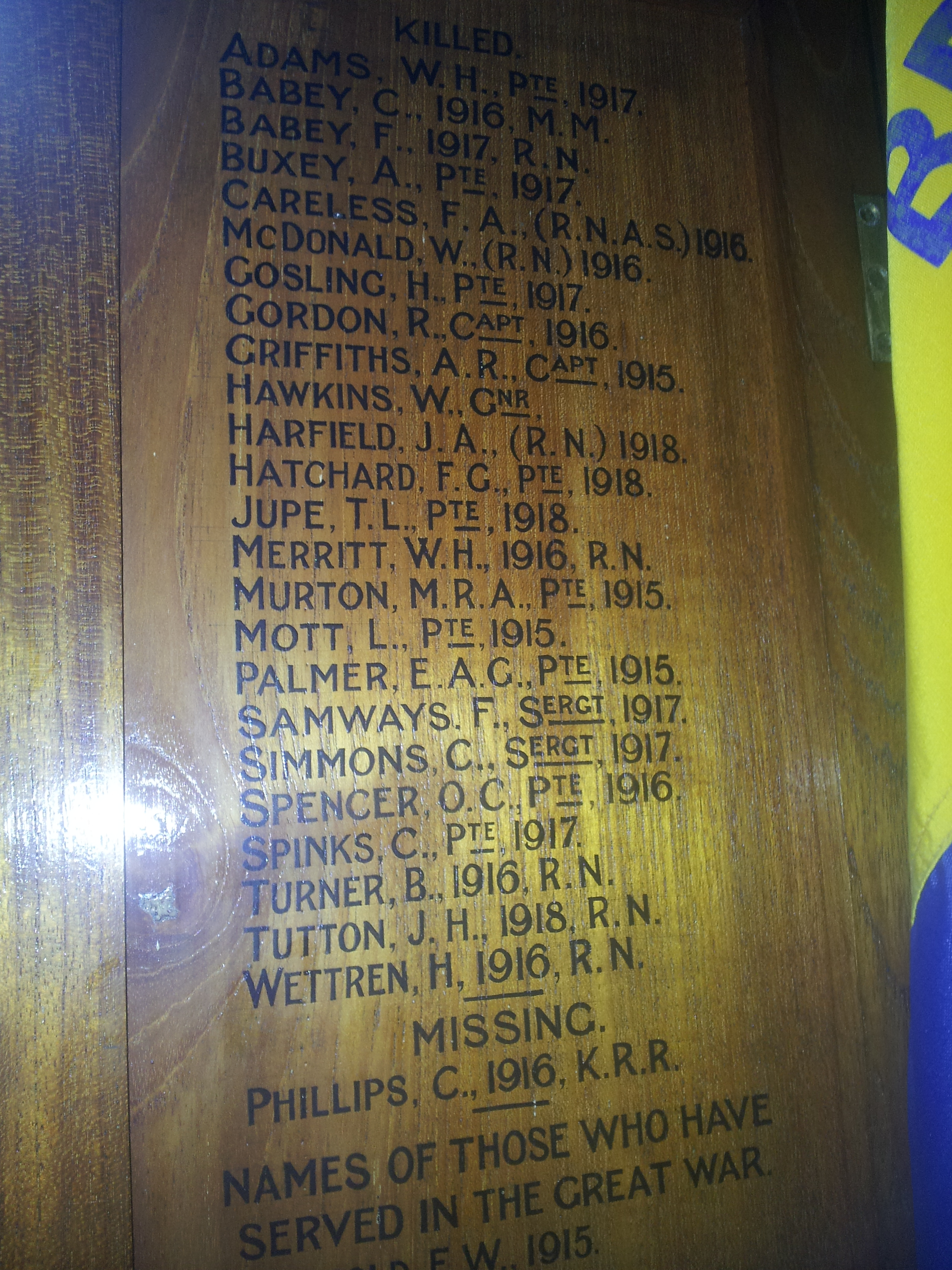 on main memorial] Killed 1916. R.N. Cannot locate anybody of that