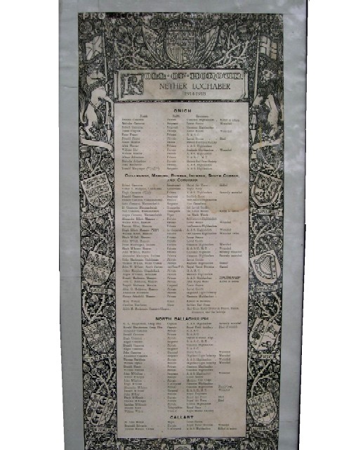 Roll of Honour for Nether Lochaber in Inverness-shire. Although it covers