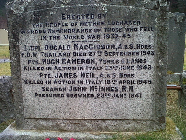 of Onich. Buried in KANCHANABURI WAR CEMETERY, Thailand. Plot