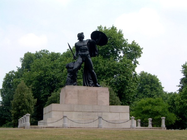 Monument (1822 by Richard Westmacott), a nude Achilles, a cloak draped