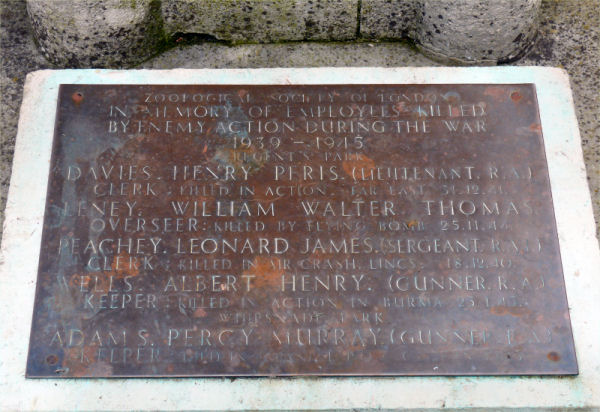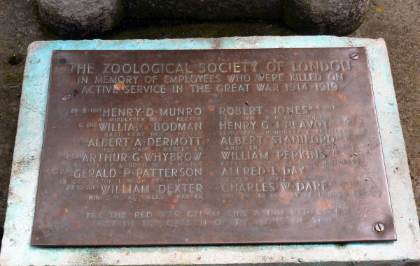 Zoological Society of London has a memorial with plaques dedicated to