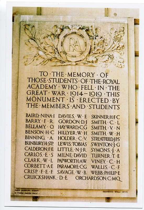 Roayl Academy World War 1 memorial is to be found in Burlington House,
