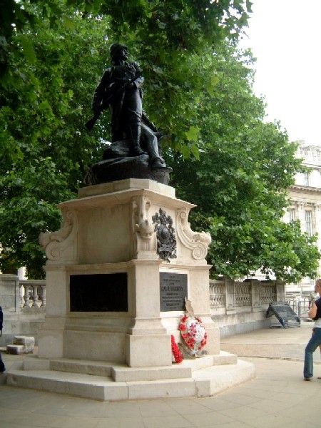 The Royal Memoirial memorial stands by Admiralty Arch on the Mall.