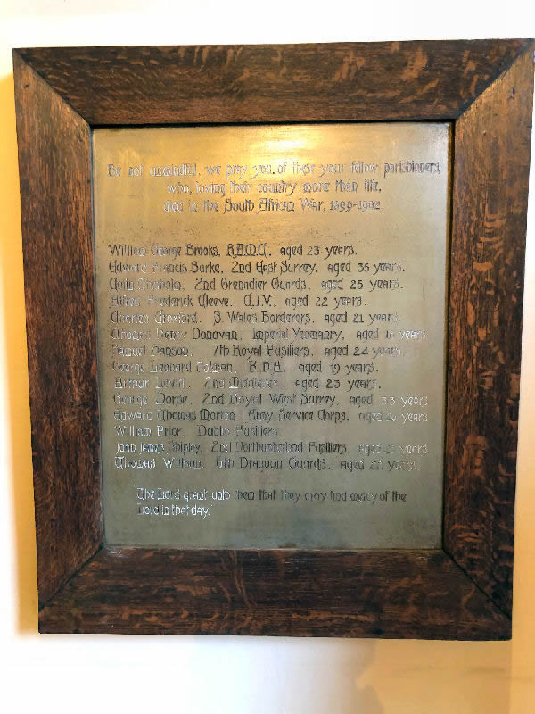 PANCRAS SOUTH AFRICAN (BOER) WAR MEMORIAL