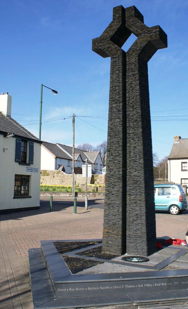 the town centre taking the form of a Celtic Cross made of Welsh slate.