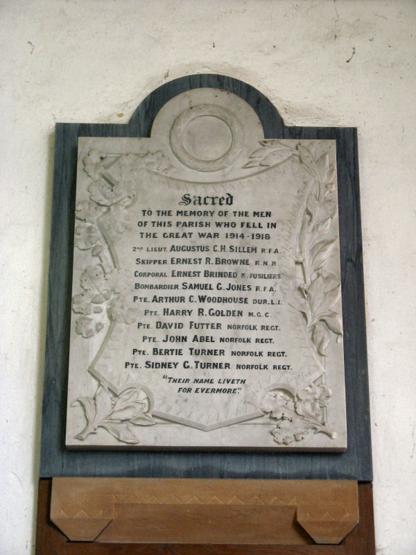 Norfolk. The first is for World War 1 and takes the form of a white