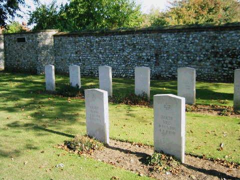 situated within the War Cemetery in a separate plot are the graves of 10 more