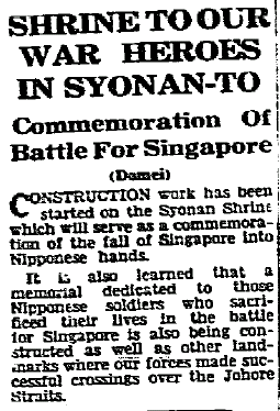 The Shrine, called Victory Hill, is long gone but you can still walk up the 121 steps. It was demolished by the British in 1956 and the material used as hard core for roadways. As the monument was being created, the Japanese created a hole down the centre. Once completed the ashes of all those Japanese soldiers who had been cremated were systematically placed in this centre cavity. Also placed in the cavilty were the remains of many victims of Japanese torture up to the end of March 1942. Included were a number of nurses and others who had fulfilled their duties as comfort women. This is mostly recorded in the Singapore history department. The photograph was taken in September 1942 on Bukit Batok Hill, overlooking the Bukit Timah Road, Singapore, very near to the old Ford Factory. Using British and Australian POW labour the Japanese built a shrine to their war dead and the POWs were permitted to erect a 10 foot wooden cross to commemorate their own dead. This was something of a propaganda exercise with photographs and a front page report in the Syonan Times - Japanese controlled Straits Times - of September 11th 1942. Quote: "Memorial erected to Fallen Enemy Soldiers: Spirit of Bushido reflected in our Army's gesture." |