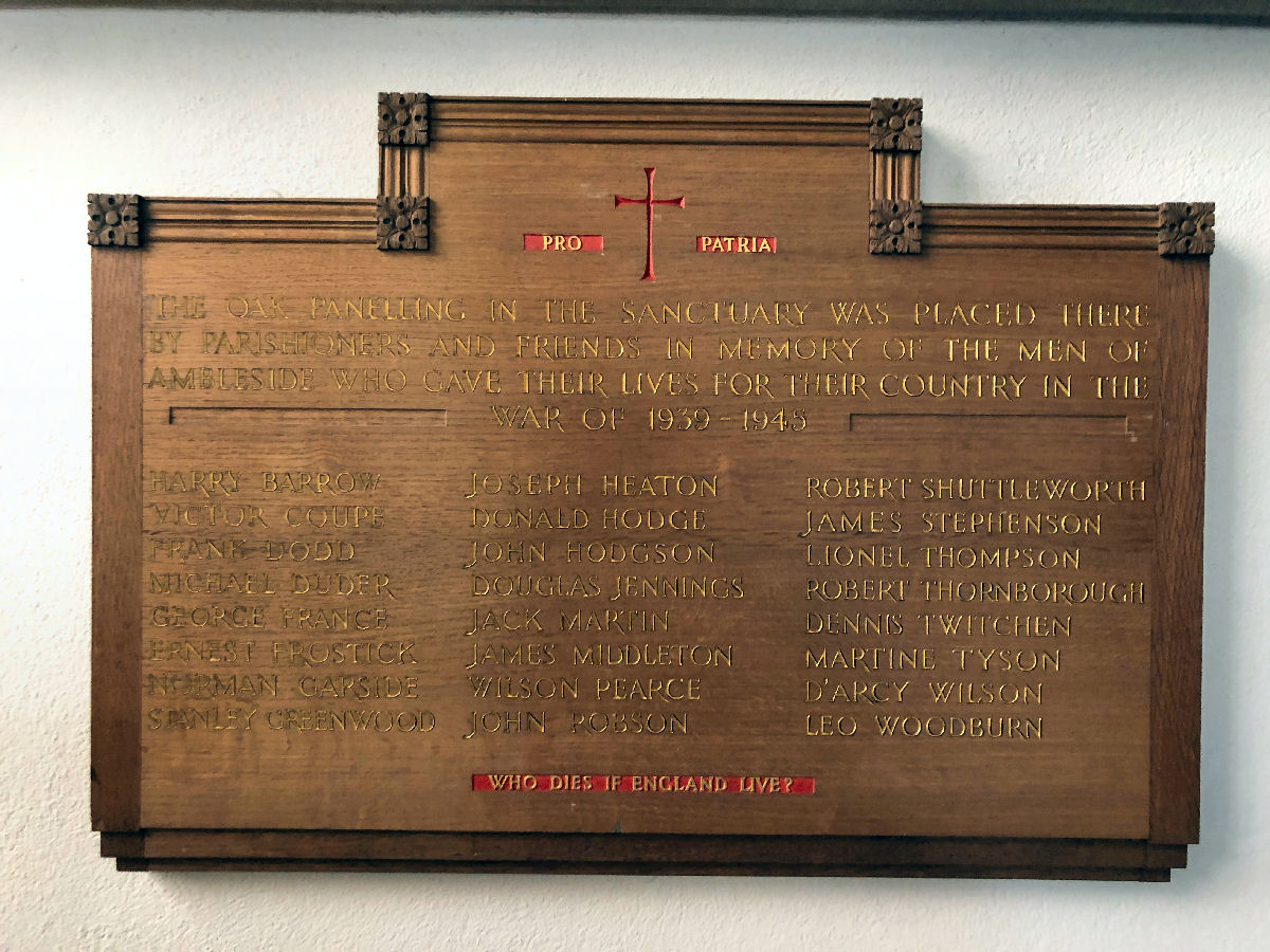 Located in St Mary's Church, Ambleside the memorial consists of eight